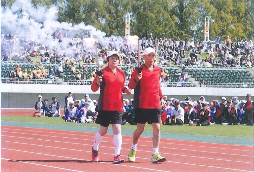 今回、周南市老人クラブ連合会新南陽支部の山時夫妻による炬火台点火と開会宣言が行われました。